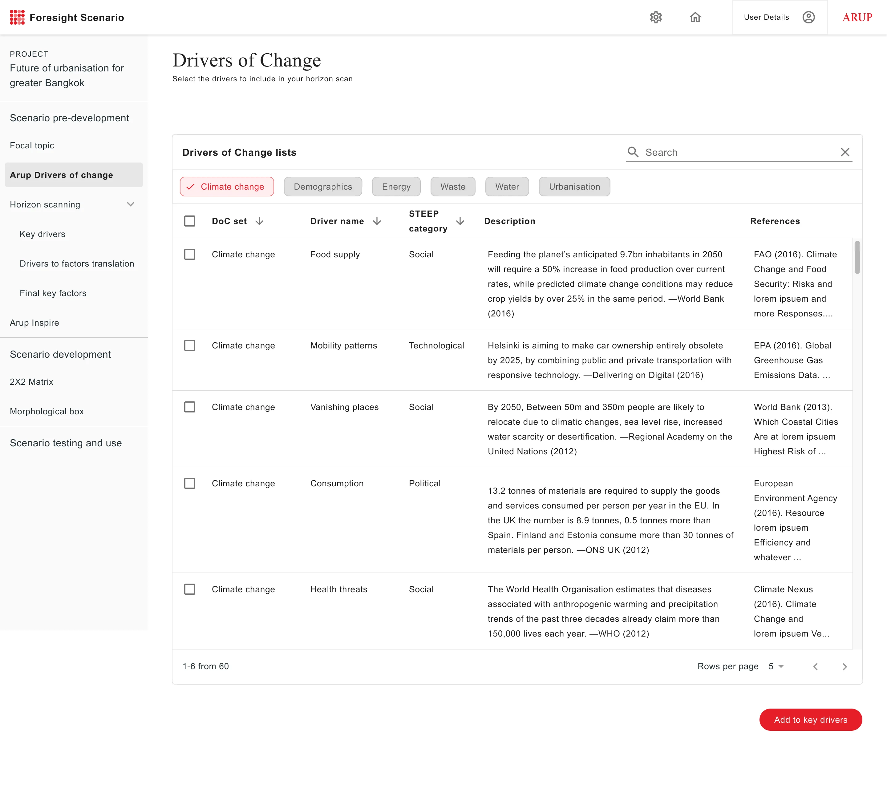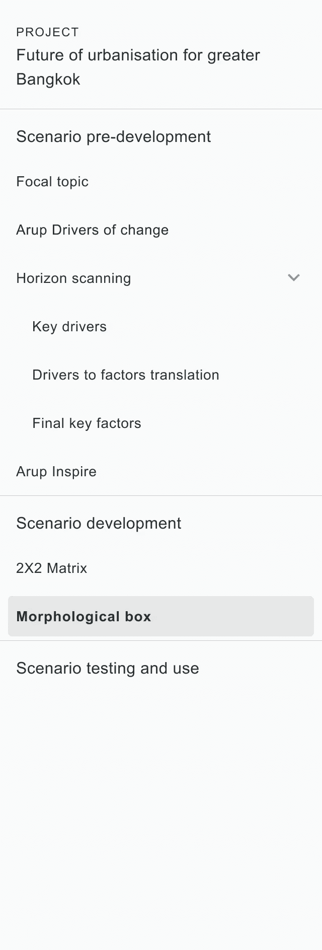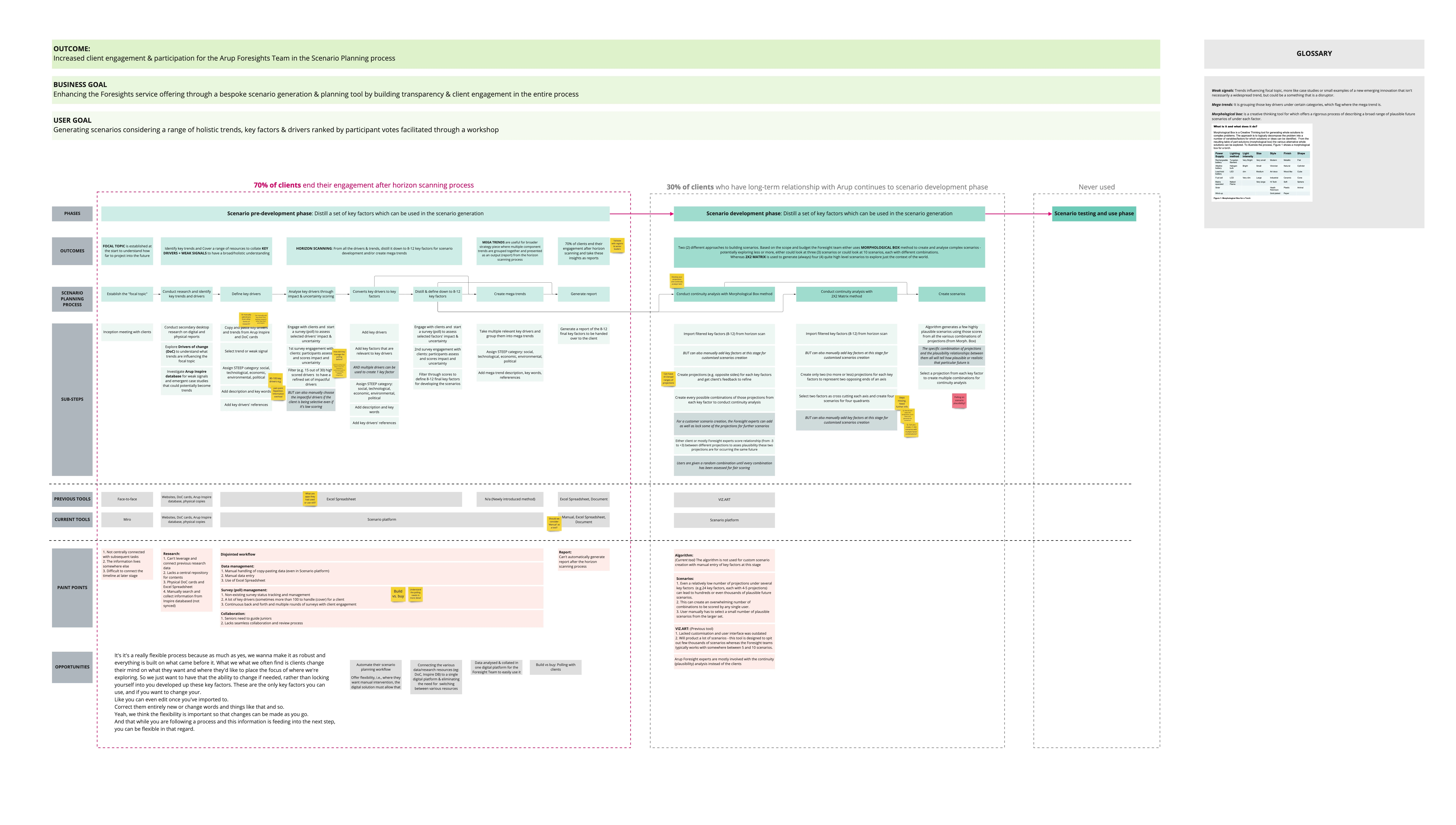 Arup's Foresight team helped clients prepare for uncertain futures through scenario planning. Internally the process was fragmented. Regional and global teams relied on manual methods led by senior advisors, with no central system to store or access the datasets that informed their work. The team had been investing in a digital tool to change this. When they came to the Digital Services team wanting to expand it, the first task was to understand what they actually had.
