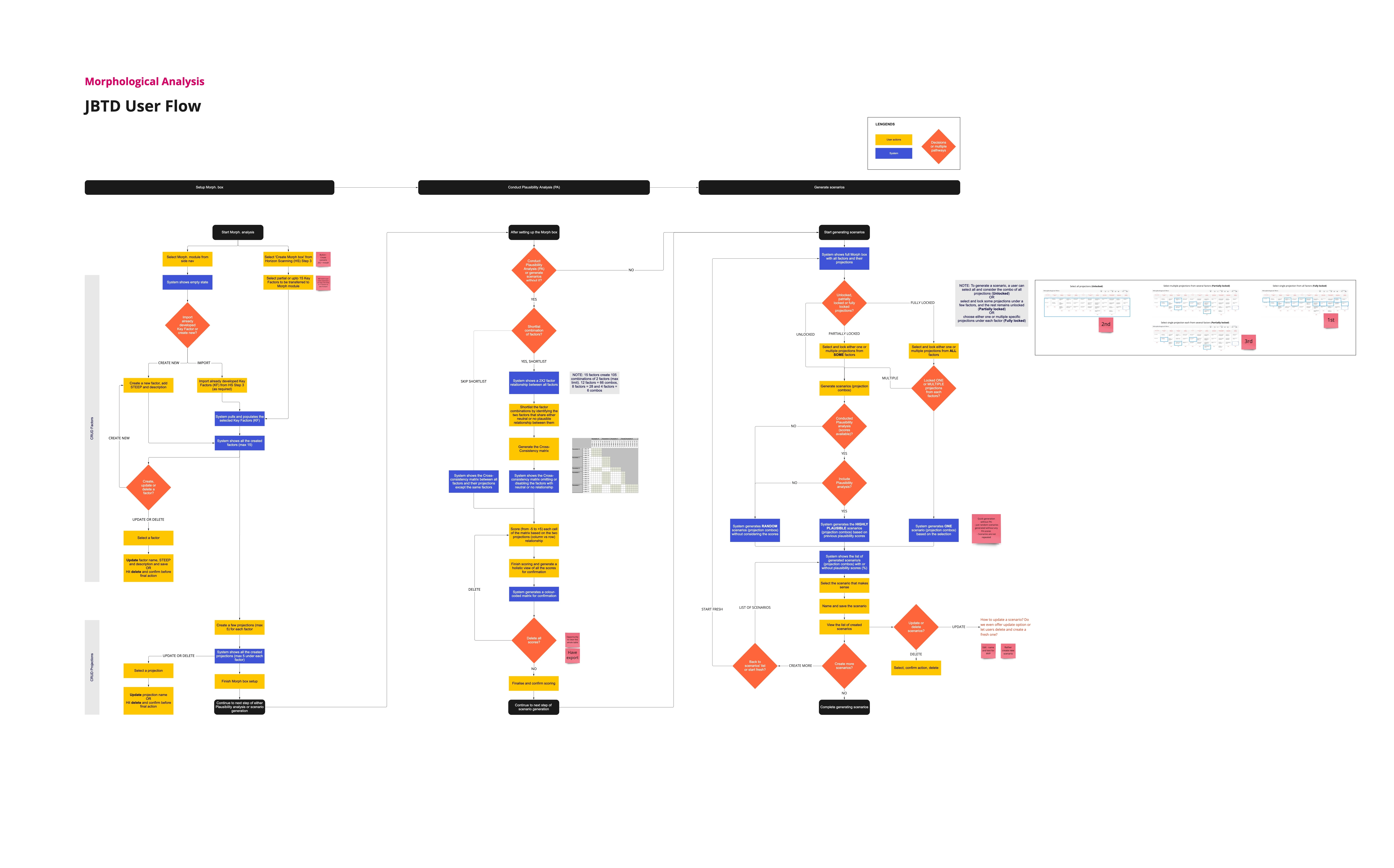 I led SME interviews to understand how scenario planning actually worked across the organisation. The process operated across three stages. Scenario pre-development, Scenario development and Scenario testing and use. The MVP scope was defined to cover the first two stages.